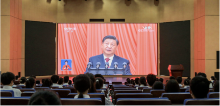 学院党政班子成员,教师和辅导员代表,预备党员和入党积极分子等人在北校区会议室(一)、匠心楼303,南校区笃行楼报告厅等集中收看,其他师生在各自家里或宿舍收看。
